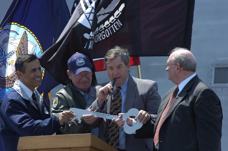 Keywords: US Navy 050801-N-7676W-629 San Diego Congressmen welcome Chairman of the Board, President and Chief Executive Officer of Titan Corporation, Dr. Gene W. Ray, right, to the podium during a welcoming ceremony for Sea Fighter (FSF.jpg en San Diego Calif Aug 1 2005 - Congressman Darrell Issa R-San Diego left Congressman Randy Duke Cunningham R-San Diego left center and Congressman Duncan Hunter R-San Diego right center welcome Chairman of the Board President and Chief Executive Officer of Titan Corporation Dr Gene W Ray right to the podium during a welcoming ceremony for Sea Fighter FSF 1 Developed by the Office of Naval Research ONR Sea Fighter is a high-speed aluminum catamaran that will test a variety of technologies that will allow the Navy to operate in littoral waters U S Navy Photograph by John F Williams RELEASED 2005-08-01 050801-N-7676W-629 Navy http //www navy mil/view_image asp id 26798 U S Navy photo PD-USGov-Military-Navy Naval Base San Diego in the 2000s Sea Fighter ship 2005 |