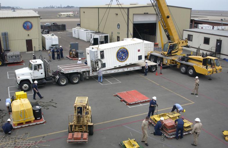 | Keywords: US Navy 050805-N-1995C-105 Sailors assigned to the U.S. Navy's Unmanned Vehicle (UMV) Detachment, located at Naval Air Station North Island, make preparations to load Super Scorpio.jpg en San Diego Calif Aug 5 2005 - Sailors assigned to the U S Navy's Unmanned Vehicle UMV Detachment located at Naval Air Station North Island make preparations to load Super Scorpio a robotic rescue vehicle aboard an Air Force C-5 Galaxy aircraft The Navy is transporting two of the remotely operated vehicles in an effort to assist the rescue of seven Russian Sailors trapped on the ocean floor in a mini-submarine off the Kamchatka Peninsula The Super Scorpios and a team of U S Navy technicians are to be flown from San Diego to Petropavolvsk then transported by truck to be embarked on a Russian ship before making a descent to the stranded submarine U S Navy photo by Chief Photographer's Mate Steven Cooke RELEASED 2005-08-05 050805-N-1995C-105 Navy http //www navy mil/view_image asp id 26897 U S Navy photo by Chief Photographer's Mate Steven Cooke PD-USGov-Military-Navy Scorpio ROV at Naval Air Station North Island Ford L-Series Trucks Link-Belt Construction Equipment Cranes White trucks |