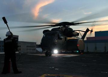 | Keywords: US Navy 050908-N-7202W-016 A flight deck Sailor stands with CO2 bottle ready to assist in case of any mishap as a MH-53E Sea Dragon helicopter prepares to launch from the flight deck aboard the amphibious assault ship USS Iwo J.jpg en New Orleans Sept 8 2005 - A flight deck Sailor stands with CO2 bottle ready to assist in case of any mishap as a MH-53E Sea Dragon helicopter prepares to launch from the flight deck aboard the amphibious assault ship USS Iwo Jima LHD 7 Iwo Jima is currently pier side in New Orleans assisting in Joint Task Force Katrina hurricane relief efforts to bring much needed supplies and help to Gulf Coast region The Navy's involvement in the humanitarian assistance operations is being led by the Federal Emergency Management Agency FEMA in conjunction with the Department of Defense U S Navy photo by Photographer's Mate Airman Amanda M Williams RELEASED 2005-09-08 050908-N-7202W-016 Navy http //www navy mil/view_image asp id 28013 U S Navy photo by Photographer's Mate Airman Amanda M Williams PD-USGov-Military-Navy Naval Air Station Joint Reserve Base New Orleans Aboard USS Iwo Jima LHD-7 MH-53E Sea Dragon |