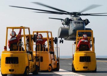 | Keywords: US Navy 050913-N-0535P-073 Sailors manning forklifts prepare to load supplies into an MH-53 Sea Dragon helicopter on the flight deck aboard USS Harry S. Truman (CVN 75) in support of hurricane relief efforts.jpg en Gulf of Mexico Sept 13 2005 - Sailors manning forklifts prepare to load supplies into an MH-53 Sea Dragon helicopter on the flight deck aboard USS Harry S Truman CVN 75 in support of hurricane relief efforts The Nimitz class aircraft carrier is currently deployed to the Gulf Coast in support of Hurricane Katrina operations The Navy's involvement in the Hurricane Katrina humanitarian assistance operations are led by the Federal Emergency Management Agency FEMA in conjunction with the Department of Defense U S Navy photo by Photographer's Mate 3rd Class Jay C Pugh RELEASED 2005-09-13 050913-N-0535P-073 Navy http //www navy mil/view_image asp id 28185 U S Navy photo by Photographer's Mate 3rd Class Jay C Pugh PD-USGov-Military-Navy Aboard USS Harry S Truman CVN-75 Sikorsky MH-53E Sea Dragon in flight Military forklifts |