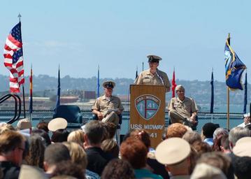 | Keywords: US Navy 050916-N-0962S-062 Master Chief Petty Officer of the Navy (MCPON) Terry Scott speaks during a chief petty officer pinning ceremony on board the San Diego Aircraft Carrier Museum Midway.jpg en San Diego Sept 16 2005 - Master Chief Petty Officer of the Navy MCPON Terry Scott speaks during a chief petty officer pinning ceremony on board the San Diego Aircraft Carrier Museum Midway During his speech Scott explained what it means to become a chief Shipmates friends and families watched and participated in pinning 73 new chief petty officers during the ceremony U S Navy photo by Journalist 1st Class Brandan W Schulze RELEASED 2005-09-16 050916-N-0962S-062 Navy http //www navy mil/view_image asp id 28387 U S Navy photo by Journalist 1st Class Brandan W Schulze PD-USGov-Military-Navy USS Midway Museum - Flight deck Terry D Scott |