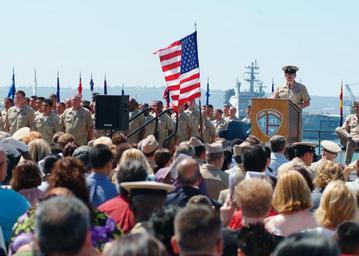 | Keywords: US Navy 050916-N-0962S-064 Master Chief Petty Officer of the Navy (MCPON) Terry Scott speaks during a chief petty officer pinning ceremony on board the San Diego Aircraft Carrier Museum Midway.jpg en San Diego Sept 16 2005 - Master Chief Petty Officer of the Navy MCPON Terry Scott speaks during a chief petty officer pinning ceremony on board the San Diego Aircraft Carrier Museum Midway During his speech Scott explained what it means to become a chief Shipmates friends and families watched and participated in pinning 73 new chief petty officers during the ceremony U S Navy photo by Journalist 1st Class Brandan W Schulze RELEASED 2005-09-16 050916-N-0962S-064 Navy http //www navy mil/view_image asp id 28388 U S Navy photo by Journalist 1st Class Brandan W Schulze PD-USGov-Military-Navy USS Midway Museum - Flight deck Terry D Scott |