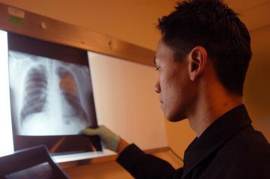 | Keywords: US Navy 051012-N-9293K-001 U.S. Navy Hospital Corpsman 2nd Class Michael Kiamzon of Cerritus, Calif., examines a chest X-Ray.jpg en Everett Wash June 30 2005 U S Navy Hospital Corpsman 2nd Class Michael Kiamzon of Cerritus Calif examines a chest X-Ray at the Naval Health Clinic's Radiology Department on board Naval Station Everett Wash The radiology department provides Sailors the opportunity to be looked at right away after an injury or possible broken bone U S Navy photo by Photographer's Mate 3rd Class Jacob J Kirk RELEASED 2005-06-30 051012-N-9293K-001 Navy http //www navy mil/view_image asp id 28860 U S Navy photo by Photographer's Mate 3rd Class Jacob J Kirk PD-USGov-Military-Navy Naval Station Everett Hospital Corpsman X-rays of the chest |