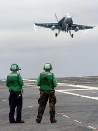 | Keywords: US Navy 051013-N-5345W-072 Air Department personnel watch as an F-A-18A- Hornet, assigned to the Silver Eagles of Marine Fighter Attack Squadron One One Five (VMFA-115), approaches on a touch-and-go pass.jpg en Atlantic Ocean Oct 13 2005 - Air Department personnel watch as an F/A-18A+ Hornet assigned to the Silver Eagles of Marine Fighter Attack Squadron One One Five VMFA-115 approaches on a touch-and-go pass during flight operations aboard the Nimitz-class aircraft carrier USS Harry S Truman CVN 75 Truman is currently conducting carrier qualifications and sustainment training with embarked Carrier Air Wing Three CVW-3 off the East Coast of the United States U S Navy photo by Photographer's Mate 3rd Class Kristopher Wilson RELEASED 2005-10-13 051013-N-5345W-072 Navy http //www navy mil/view_image asp id 28969 U S Navy photo by Photographer's Mate 3rd Class Kristopher Wilson PD-USGov-Military-Navy Aboard USS Harry S Truman CVN-75 |