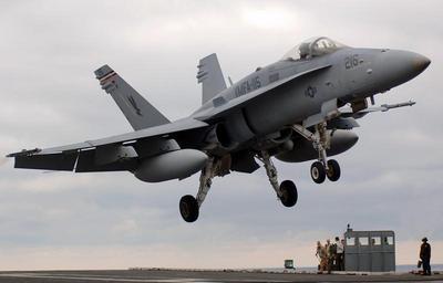 | Keywords: US Navy 051014-N-2984R-002 An F-A-18A- Hornet, assigned to the Silver Eagles of Marine Fighter Attack Squadron One One Five (VMFA-115), conducts a touch and go landing.jpg en Atlantic Ocean Oct 14 2005 - An F/A-18A+ Hornet assigned to the Silver Eagles of Marine Fighter Attack Squadron One One Five VMFA-115 conducts a touch and go landing on the flight deck aboard the Nimitz-class aircraft carrier USS Harry S Truman CVN 75 Truman is currently conducting carrier qualifications and sustainment training with embarked Carrier Air Wing Three CVW-3 off the East Coast U S Navy photo by Photographer's Mate Airman Ricardo J Reyes RELEASED 2005-10-14 051014-N-2984R-002 Navy http //www navy mil/view_image asp id 29329 U S Navy photo by Photographer's Mate Airman Ricardo J Reyes PD-USGov-Military-Navy F/A-18A Hornet in flight Aboard USS Harry S Truman CVN-75 |
