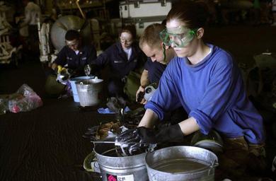 | Keywords: US Navy 051024-N-4843B-040 Crew members sanitize MCU-2P gas masks in the hangar bay aboard the nuclear-powered aircraft carrier USS Nimitz (CVN 68).jpg en Pacific Ocean Oct 24 2005 Crew members sanitize MCU-2P gas masks in the hangar bay aboard the nuclear-powered aircraft carrier USS Nimitz CVN 68 The MCU-2P is the standard gas mask for U S Navy Sailors to defend against Chemical Biological and Radiological CBR attacks The Nimitz Strike Group is currently on a regularly scheduled deployment in support of the Global War on Terrorism U S Navy photo by Photographer s Mate Airman Dominique V Brown RELEASED 2005-10-24 051024-N-4843B-040 Navy http //www navy mil/view_image asp id 29258 U S Navy photo by Photographer s Mate Airman Dominique V Brown PD-USGov-Military-Navy Aboard USS Nimitz CVN-68 |