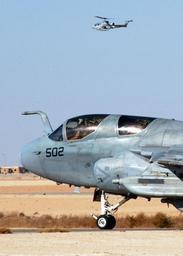 | Keywords: US Navy 051114-N-9362D-057 An EA-6B Prowler, assigned to the Shadowhawks of Electronic Attack Squadron One Four One (VAQ-141), taxis down the runway at the Al Asad Air Base.jpg en Al Asad Iraq Nov 14 2005 - An EA-6B Prowler assigned to the Shadowhawks of Electronic Attack Squadron One Four One VAQ-141 taxis down the runway at the Al Asad Air Base A detachment of the Shadowhawks is stationed at Al Asad flying missions in support of the Global War on Terrorism VAQ-141 is assigned to Carrier Air Wing Eight CVW-8 currently embarked aboard USS Theodore Roosevelt CVN 71 U S Navy photo by Photographer's Mate 3rd Class Randall Damm RELEASED 2005-11-14 051114-N-9362D-057 Navy http //www navy mil/view_image asp id 30148 U S Navy photo by Photographer's Mate 3rd Class Randall Damm PD-USGov-Military-Navy Al Asad Airbase Military aircraft in the Iraq War Grumman EA-6 Prowler Aboard USS Theodore Roosevelt CVN-71 Electronic Attack Squadron 141 United States Navy |