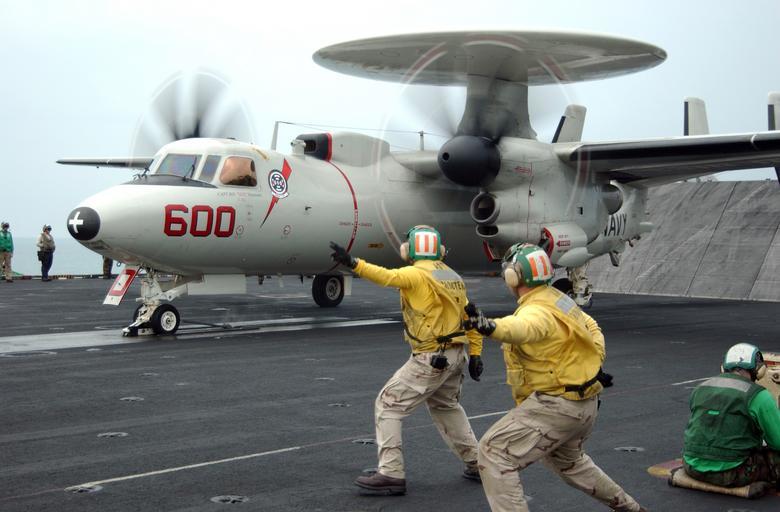 Keywords: US Navy 051115-N-6484E-003 Two catapult shooters give the signal to launch an E-2C Hawkeye.jpg en Persian Gulf Nov 15 2005 - Two catapult shooters give the signal to launch an E-2C Hawkeye assigned to the Bear Aces of Carrier Airborne Early Warning Squadron One Two Four VAW-124 from the flight deck of the Nimitz-class aircraft carrier USS Theodore Roosevelt CVN 71 Roosevelt and embarked Carrier Air Wing Eight CVW-8 are currently underway in the Persian Gulf supporting Operation Steel Curtain a joint U S -Iraqi military offensive aimed at preventing cells of Al Qaeda from entering Iraq through the Syrian border U S Navy photo by Photographer's Mate Airman Stephen Early RELEASED 2005-11-15 051115-N-6484E-003 Navy http //www navy mil/view_image asp id 29996 U S Navy photo by Photographer's Mate Airman Stephen Early PD-USGov-Military-Navy USS Theodore Roosevelt CVN-71 flight deck Northrop Grumman E-2C Hawkeye aircraft carrier take-offs Airborne Early Warning Squadron 124 United States Navy |