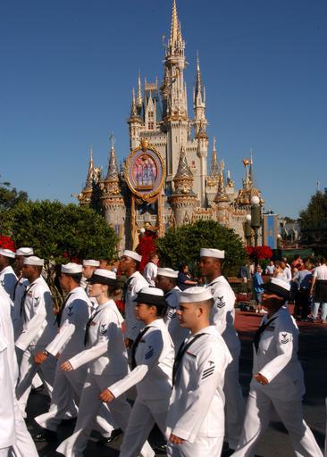 | Keywords: US Navy 051204-N-6645H-076 Sailors from various U.S. Navy commands throughout Navy's Southeast Region march before Cinderella's Castle before entering onto Main St. inside Walt Disney World's Magic Kingdom.jpg en Orlando Fla Dec 4 2005 - Sailors from various U S Navy commands throughout Navy's Southeast Region march before Cinderella's Castle before entering onto Main St inside Walt Disney World's Magic Kingdom The Sailors were greeted by family members and guests and joined Disney World's Military Salute for its 2005 Christmas Day Parade taping U S Navy photo by Photographer s Mate 3rd Class Adam J Herrada RELEASED 2005-12-04 051204-N-6645H-076 Navy http //www navy mil/view_image asp id 30464 U S Navy photo by Photographer s Mate 3rd Class Adam J Herrada PD-USGov-Military-Navy Cinderella Castle at Magic Kingdom |