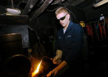 | Keywords: US Navy 051208-N-9641C-003 Hull Maintenance Technician Fireman Todd Goodrich lights a brazing torch in preparation of welding pipes together in the sheet metal shop aboard the Nimitz-class aircraft carrier USS Dwight D. Eisenho.jpg en Atlantic Ocean Dec 8 2005 - Hull Maintenance Technician Fireman Todd Goodrich lights a brazing torch in preparation of welding pipes together in the sheet metal shop aboard the Nimitz-class aircraft carrier USS Dwight D Eisenhower CVN 69 Eisenhower is currently underway conducting routine operations U S Navy photo by Airman Peter Carnicelli RELEASED 2005-12-08 051208-N-9641C-003 Navy http //www navy mil/view_image asp id 30593 U S Navy photo by Airman Peter Carnicelli PD-USGov-Military-Navy Brazing Aboard USS Dwight D Eisenhower CVN-69 Hull Maintenance Technician United States Navy |