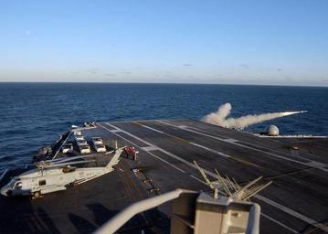 | Keywords: US Navy 051213-N-9641C-003 A RIM-7 NATO Sea Sparrow surface-to-air missile launches from the nuclear-powered aircraft carrier USS Dwight D. Eisenhower (CVN 69) during an exercise designed to demonstrate the ship^rsquo,s self-de.jpg en Atlantic Ocean Dec 13 2005 - A RIM-7 NATO Sea Sparrow surface-to-air missile launches from the nuclear-powered aircraft carrier USS Dwight D Eisenhower CVN 69 during an exercise designed to demonstrate the ship s self-defense combat system This is the first time in five years Eisenhower has fired a Sea Sparrow following the ship s major mid-life overhaul The RIM-7 Sea Sparrow is a medium-range rapid-reaction missile weapon system that provides the capability of destroying hostile aircraft anti-ship missiles and surface missile platforms U S Navy photo by Airman Peter Carnicelli RELEASED 2005-12-13 051213-N-9641C-003 Navy http //www navy mil/view_image asp id 30709 U S Navy photo by Airman Peter Carnicelli PD-USGov-Military-Navy Launches of RIM-7 Sea Sparrow missiles Flight deck of USS Dwight D Eisenhower CVN-69 |