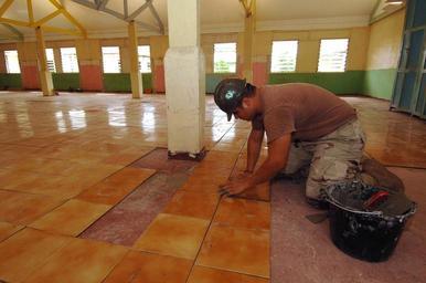 | Keywords: US Navy 051224-N-4374S-002 Builder 3rd Class Jonathan Martinez, assigned to Naval Mobile Construction Battalion Three (NMCB-3), applies a ceramic floor tile during the restoration project at the Providence Hall in St. Elisabet.jpg en Victoria Seychelles Dec 24 2005 - Builder 3rd Class Jonathan Martinez assigned to Naval Mobile Construction Battalion Three NMCB-3 applies a ceramic floor tile during the restoration project at the Providence Hall in St Elisabeth Convent a daycare center in Seychelles The NMCB-3 Seabees attached to Bahrain deployed to the island of Mahe Seychelles to provide general engineering construction and renovation of orphanages U S Navy photo by Photographer s Mate 2nd Class Michael Sandberg RELEASED 2005-12-24 051224-N-4374S-002 Navy http //www navy mil/view_image asp id 30875 U S Navy photo by Photographer s Mate 2nd Class Michael Sandberg PD-USGov-Military-Navy Tilers Grouting Flooring restauration Victoria Seychelles Naval Mobile Construction Battalion 3 Builder United States Navy Construction tiles |