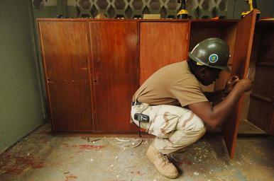 | Keywords: US Navy 051228-N-4374S-020 Store Keeper 2nd Class Sparkole Dyeth, a U.S. Navy Seabee assigned to Naval Mobile Construction Battalion Three (NMCB-3), replaces a door latch on a cabinet door during cabinet refurbishing at the Naz.jpg en Victoria Seychelles Dec 28 2005 - Store Keeper 2nd Class Sparkole Dyeth a U S Navy Seabee assigned to Naval Mobile Construction Battalion Three NMCB-3 replaces a door latch on a cabinet door during cabinet refurbishing at the Nazareth Boys Orphanage NMCB-3 is deployed to the island of Mahe Seychelles to provide general engineering construction and renovation of the island s orphanages U S Navy photo by Photographer's Mate 2nd Class Michael Sandberg RELEASED 2005-12-28 051228-N-4374S-020 Navy http //www navy mil/view_image asp id 30928 U S Navy photo by Photographer's Mate 2nd Class Michael Sandberg PD-USGov-Military-Navy Victoria Seychelles Naval Mobile Construction Battalion 3 |