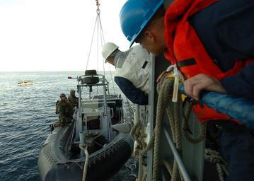 Keywords: US Navy 060117-N-7027P-030 Personnel assigned to U.S. Naval Special Clearance Team One (NSCT-1) hold onto to their eleven-meter rigid hull inflatable boat.jpg en Pacific Ocean Jan 17 2006 - Personnel assigned to U S Naval Special Clearance Team One NSCT-1 hold onto to their eleven-meter rigid hull inflatable boat RHIB as it is lifted aboard amphibious dock landing ship USS Comstock LSD 45 NSCT-1 is currently conducting mine counter measure training operations U S Navy photo by Photographer's Mate 2nd Class Sandra M Palumbo RELEASED 2006-01-17 060117-N-7027P-030 Navy http //www navy mil/view_image asp id 31599 U S Navy photo by Photographer's Mate 2nd Class Sandra M Palumbo PD-USGov-Military-Navy Aboard USS Comstock LSD-45 United States Naval Special Clearance Team One