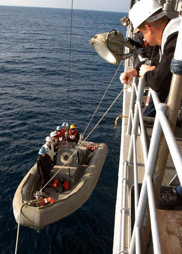 Keywords: US Navy 060127-N-7526R-038 Small Boat Safety Observer Chief Boatswain's Mate Russell Townsend looks on as a Rigged Haul Inflatable Boat (RHIB) and it's crew are lowered into the water as a safety precaution.jpg en Sagami-Wan Japan Jan 27 2006 - Small Boat Safety Observer Chief Boatswain's Mate Russell Townsend looks on as a Rigged Haul Inflatable Boat RHIB and it's crew are lowered into the water as a safety precaution during a fishing call onboard the amphibious command ship USS Blue Ridge LCC 19 The fishing call was part of a scheduled stop Blue Ridge made outside its homeport of Yokosuka Japan to pick up incoming personnel Blue Ridge and the embarked Seventh Fleet staff recently deployed to complete routine port visits and community relations projects throughout the Seventh Fleet area of operation AOR U S Navy photo by Journalist Seaman Marc Rockwell-Pate RELEASED 2006-01-27 060127-N-7526R-038 Navy http //www navy mil/view_image asp id 31540 U S Navy photo by Journalist Seaman Marc Rockwell-Pate PD-USGov-Military-Navy Images from US Navy location Sagami Bay Japan Rigid-hulled inflatable boats Small boats |