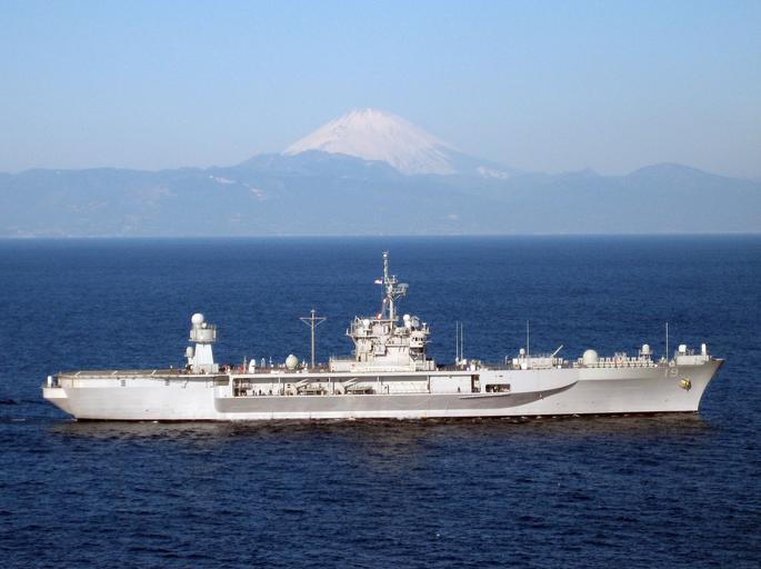 | Keywords: US Navy 060128-N-0000M-001 The amphibious command ship USS Blue Ridge (LCC 19) transit the eastern coast of Japan as Mt. Fuji looms on the horizon.jpg en Sagami-Wan Japan Jan 28 2006 - The amphibious command ship USS Blue Ridge LCC 19 transit the eastern coast of Japan as Mt Fuji looms on the horizon Blue Ridge and embarked 7th Fleet staff recently deployed to complete routine port visits and community relations projects throughout the 7th Fleet area of operation AOR U S Navy photo by Aviation Warfare Systems Operator 2nd Class Roger Moore RELEASED 2006-01-28 060128-N-0000M-001 Navy http //www navy mil/view_image asp id 31570 U S Navy photo by Aviation Warfare Systems Operator 2nd Class Roger Moore PD-USGov-Military-Navy Images from US Navy location Sagami Bay Japan Images from US Navy location MOUNT FUJI Japan General views of USS Blue Ridge LCC-19 Ships with Mount Fuji Ships facing right |