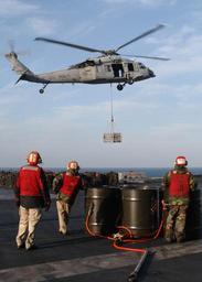 | Keywords: US Navy 060128-N-9805F-001 Weapons Department personnel standby during a vertical replenishment at sea.jpg en Norfolk Va Jan 28 2006 - Weapons Department personnel standby during a vertical replenishment at sea RAS operation aboard the Nimitz-class aircraft carrier USS Theodore Roosevelt CVN 71 Roosevelt and embarked Carrier Air Wing Eight CVW-8 are underway on a regularly scheduled deployment conducting maritime security operations U S Navy photo by Photographer's Mate 3rd Class Tony Foster RELEASED 2006-01-28 060128-N-9805F-001 Navy http //www navy mil/view_image asp id 31580 U S Navy photo by Photographer's Mate 3rd Class Tony Foster PD-USGov-Military-Navy MH-60S Seahawk USS Theodore Roosevelt CVN-71 flight deck Helihoisting of cargo |