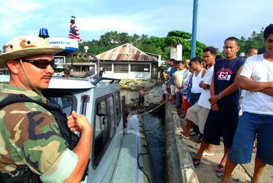 | Keywords: US Navy 060220-N-4772B-436 Hospital Corpsman 2nd Class Leonard Ray talks with local villagers from an 11 meter Rigid Hull Inflatable Boat (RHIB) deployed from the dock landing ship USS Harpers Ferry (LSD 49).jpg en Leloan Republic of the Philippines Feb 20 2006 - Hospital Corpsman 2nd Class Leonard Ray talks with local villagers from an 11 meter Rigid Hull Inflatable Boat RHIB deployed from the dock landing ship USS Harpers Ferry LSD 49 during a beach survey of the area Harpers Ferry and the amphibious assault ship USS Essex LHD 2 are providing humanitarian assistance to victims in the Saint Bernard Municipality where the town of Guinsahugon located in the southern part of the island was completely devastated during a Feb 17 landslide U S Navy photo by Journalist 2nd Class Brian P Biller RELEASED 2006-02-20 060220-N-4772B-436 Navy http //www navy mil/view_image asp id 32098 U S Navy photo by Journalist 2nd Class Brian P Biller PD-USGov-Military-Navy Images from US Navy location Leloan Republic of the Philippines Rigid-hulled inflatable boats Aboard USS Harpers Ferry LSD-49 |