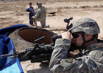 | Keywords: US Navy 060313-N-6901L-031 U.S. Army Pfc. Roberto Maynez assigned to the 66th Armor Regiment, Alpha Company, performs perimeter security checks.jpg en Taji Iraq March 13 2006 P U S Army Pfc Roberto Maynez assigned to the 66th Armor Regiment Alpha Company performs perimeter security checks while Spc Jacob Rogge interacts with a local Iraqi boy during a routine patrol near Forward Operating Base Camp Taji U S Navy photo by Photographer's Mate 1st Class Michael Larson RELEASED 2006-03-13 060313-N-6901L-031 Navy http //www navy mil/view_image asp id 32772 U S Navy photo by Photographer's Mate 1st Class Michael Larson PD-USGov-Military-Navy Camp Taji M249 light machine guns |