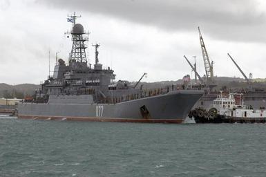 | Keywords: US Navy 060327-N-9167V-081 The Russian Federated Navy (RFN) tank landing ship, BDK-11, prepares to moor at Apra Harbor.jpg en Apra Harbor Guam March 27 2006 The Russian Federated Navy RFN tank landing ship BDK-11 prepares to moor at Apra Harbor The Russian ship is one of four RFN ships and two U S Navy ships which participated in passing exercise PASSEX 2006 off the coast of Guam PASSEX is an exercise designed to increase interoperability between the two navies while enhancing the strong cooperative relationship between Russia and the United States U S Navy photo by Photographer s Mate 2nd Class Edward N Vasquez RELEASED 2006-03-27 060327-N-9167V-081 Navy http //www navy mil/view_image asp id 33135 U S Navy photo by Photographer s Mate 2nd Class Edward N Vasquez PD-USGov-Military-Navy Peresvet ship 1991 Ships at Naval Base Guam |