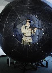 | Keywords: US Navy 060329-N-7676W-009 VirtuSphere, located at the Naval Research Laboratory (NRL), is a nine-foot plastic ball that sits on wheels enabling unlimited rotation in any direction.jpg en Washington D C March 29 2006 - VirtuSphere located at the Naval Research Laboratory NRL is a nine-foot plastic ball that sits on wheels enabling unlimited rotation in any direction The Office of Naval Research ONR is developing systems like VirtuSphere as part of a program called Virtual Technologies and Environments VIRTE A user wears a wireless head-mounted display HMD that displays landscape and can update continuously as the service member moves by detecting changes in orientation Much of the work with VIRTE focuses on the needs of the Marine Corps U S Navy Photograph by John F Williams RELEASED 2006-03-29 060329-N-7676W-009 Navy http //www navy mil/view_image asp id 33238 U S Navy photo PD-USGov-Military-Navy Equipment of the United States Navy United States Naval Research Laboratory Virtual reality hardware Black objects Head-mounted display |