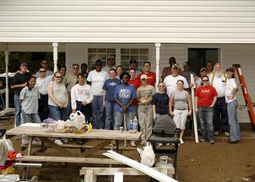 | Keywords: US Navy 060410-N-7781S-100 Sailors assigned to the Navy Operational Support Center (NOSC), Habitat for Humanity coordinators and Maliza Wilson the future house owner pose for a group photo.jpg en Jacksonville Fla April 10 2006 - Sailors assigned to the Navy Operational Support Center NOSC Habitat for Humanity coordinators and Maliza Wilson the future house owner pose for a group photo after a long days work Habitat for Humanity volunteers helped to build houses for low-income families in the Jacksonville area Twenty-seven NOSC Jacksonville Sailors volunteered for the worthy cause U S Navy photo by Photographer's Mate 2nd Class Andrea Simmons RELEASED 2006-04-10 060410-N-7781S-100 Navy http //www navy mil/view_image asp id 33515 U S Navy photo by Photographer's Mate 2nd Class Andrea Simmons PD-USGov-Military-Navy 2006 at Naval Air Station Jacksonville |