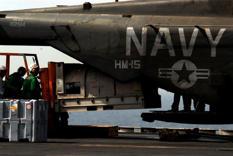 | Keywords: US Navy 060508-N-7711S-288 Supply Department personnel load various cargo on to an MH-53E Sea Dragon assigned to Helicopter Mine Support Squadron One Five (HM-15) on the flight deck aboard the Nimitz-class aircraft carrier USS.jpg en Persian Gulf May 8 2006 - Supply Department personnel load various cargo on to an MH-53E Sea Dragon assigned to Helicopter Mine Support Squadron One Five HM-15 on the flight deck aboard the Nimitz-class aircraft carrier USS Ronald Reagan CVN 76 Reagan and embarked Carrier Air Wing One Four CVW-14 are currently deployed as part of a routine rotation of U S maritime forces in support of the global war on terrorism as well as conducting Maritime Security Operations MSO in the region U S Navy photo by Photographer's Mate Airman Christine Singh RELEASED 2006-05-08 060508-N-7711S-288 Navy http //www navy mil/view_image asp id 34323 U S Navy photo by Photographer's Mate Airman Christine Singh PD-USGov-Military-Navy Helicopters at USS Ronald Reagan CVN-76 MH-53E Sea Dragon |
