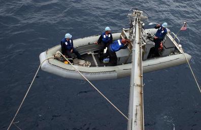 | Keywords: US Navy 060509-N-0191T-012 The amphibious transport dock ship USS San Antonio (LPD 17) launches the ready life boat from the starboard side boat deck to provide assistance to the small recreational boat Denise Marie.jpg en Atlantic Ocean May 9 2006 - The amphibious transport dock ship USS San Antonio LPD 17 launches the ready life boat from the starboard side boat deck to provide assistance to the small recreational boat Denise Marie which drifted 50 miles off shore San Antonio was transiting back to her homeport of Norfolk Va after attending Fleet Week USA 2006 in Ft Lauderdale Fla U S Navy photo by Journalist 3rd Class Anthony C Tornetta RELEASED 2006-05-09 060509-N-0191T-012 Navy http //www navy mil/view_image asp id 34399 U S Navy photo by Journalist 3rd Class Anthony C Tornetta PD-USGov-Military-Navy Aboard USS San Antonio LPD 17 |