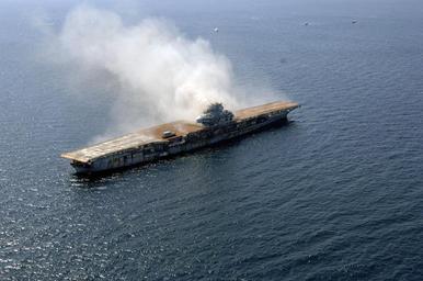 | Keywords: US Navy 060517-N-7992K-003 The ex-Oriskany, a decommissioned aircraft carrier, was sunk 24 miles off the coast of Pensacola, Fla., on May 17 to form an artificial reef.jpg en Gulf of Mexico May 17 2006 - The ex-Oriskany a decommissioned aircraft carrier was sunk 24 miles off the coast of Pensacola Fla on May 17 to form an artificial reef The 888-foot ship took about 37 minutes to sink below the surface After 25 years of service to the Navy in operations in Korea Vietnam and the Mediterranean ex-Oriskany will now benefit marine life sport fishing and recreation diving off the coast of the Florida panhandle U S Navy photo by Photographer's Mate 2nd Class Jeffrey P Kraus RELEASED 2006-05-17 060517-N-7992K-003 Navy http //www navy mil/view_image asp id 34613 U S Navy photo by Photographer's Mate 2nd Class Jeffrey P Kraus PD-USGov-Military-Navy Sinking of USS Oriskany CV-34 |
