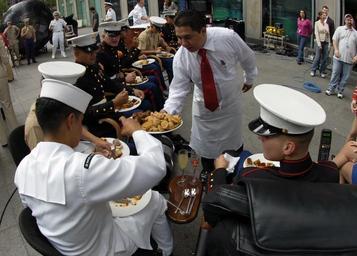 | Keywords: US Navy 060526-N-7676W-143 Amphibious assault ship USS Kearsarge (LHD 3) Sailors and Marines are served breakfast, while relaxing in massage chairs outside Fox News studios.jpg en New York City May 26th 2006 - Amphibious assault ship USS Kearsarge LHD 3 Sailors and Marines are served breakfast while relaxing in massage chairs outside Fox News studios during an appearance on the Fox Friends morning show Kearsarge and her crew are currently participating in 2006 New York Fleet Week Fleet week includes dozens of military demonstrations and displays including public tours aboard many participating ships U S Navy photo by Mr John F Williams RELEASED 2006-05-26 060526-N-7676W-143 Navy http //www navy mil/view_image asp id 35045 U S Navy photo by Mr John F Williams PD-USGov-Military-Navy Fleet Week New York 2006 Aboard USS Kearsarge LHD-3 |
