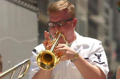 | Keywords: US Navy 060528-N-4936C-013 Musician 3rd Class Josh Sullins plays the trumpet with the Northeast Navy Show Band in Times Square during Fleet Week New York 2006.jpg en New York May 28 2006 Musician 3rd Class Josh Sullins plays the trumpet with the Northeast Navy Show Band in Times Square during Fleet Week New York 2006 Fleet Week has been sponsored by New York City since 1984 The annual event also provides an opportunity for citizens of New York City and the surrounding Tri-State area to meet Sailors and Marines as well as witness first hand the latest capabilities of today's Navy and Marine Corps team Fleet Week includes dozens of military demonstrations and displays including public tours of many of the participating ships U S Navy photo by Journalist 2nd Class David P Coleman RELEASED 2006-05-28 060528-N-4936C-013 Navy http //www navy mil/view_image asp id 35282 U S Navy photo by Journalist 2nd Class David P Coleman PD-USGov-Military-Navy Fleet Week New York 2006 Military music of the United States People with trumpets |