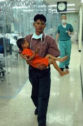| Keywords: US Navy 060529-N-2832L-012 A man carries his son from the intensive care unit aboard the U.S. Military Sealift Command (MSC) hospital ship USNS Mercy (T-AH 19).jpg en Zamboanga Republic of the Philippines May 29 2006 A man carries his son from the intensive care unit aboard the U S Military Sealift Command MSC hospital ship USNS Mercy T-AH 19 following facial surgery on his son s cleft lip The medical staff aboard Mercy is offering free medical care to the people of Zamboanga during the scheduled humanitarian visit part of a five-month deployment to South Asia Southeast Asia and the Pacific Islands Mercy s medical crew will provide general and ophthalmology surgery basic medical evaluation and treatment preventive medicine treatment dental screenings and treatment optometry screenings eyewear distribution public health training and veterinary services as requested by the host nations Mercy is uniquely capable of supporting medical and humanitarian assistance needs and is configured with special medical equipment and a robust multi-specialized medical team that can provide a range of services ashore as well as aboard the ship The medical staff is augmented with an assistance crew many of whom are part of non-governmental organizations that have significant medical capabilities U S Navy photo by Journalist Seaman Apprentice Mike Leporati RELEASED 2006-05-29 060529-N-2832L-012 Navy http //www navy mil/view_image asp id 35155 U S Navy photo PD-USGov-Military-Navy United States Navy in Zamboanga City Aboard USNS Mercy T-AH-19 |