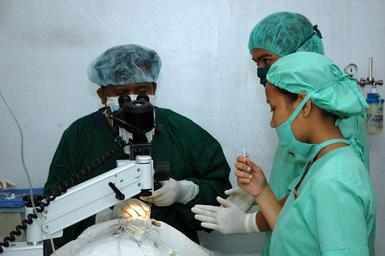 | Keywords: US Navy 060531-N-1577S-129 A local doctor performs a cataract surgery on a patient at Zamboanga Medical Center.jpg en Zamboanga Philippines May 31 2006 - A local doctor performs a cataract surgery on a patient at Zamboanga Medical Center during the U S Military Sealift Command MSC hospital ship USNS Mercy T-AH 19 visit to the city on a scheduled humanitarian visit Mercy is on a five-month deployment to South Asia Southeast Asia and the Pacific Islands The medical crew aboard Mercy will provide general and ophthalmology surgery basic medical evaluation and treatment preventive medicine treatment dental screenings and treatment optometry screenings eyewear distribution public health training and veterinary services as requested by the host nations Like all U S Naval forces Mercy is able to rapidly respond to a range of situations on short notice Mercy is uniquely capable of supporting medical and humanitarian assistance needs and is configured with special medical equipment and a robust multi-specialized medical team who can provide a range of services ashore as well as aboard the ship The medical staff is augmented with an assistance crew many of whom are part of non-governmental organizations that have significant medical capabilities U S Navy photo by Photographer's Mate 3rd Class Timothy F Sosa RELEASED 2006-05-31 060531-N-1577S-129 Navy http //www navy mil/view_image asp id 35312 U S Navy photo by Photographer's Mate 3rd Class Timothy F Sosa PD-USGov-Military-Navy United States Navy in Zamboanga City Aboard USNS Mercy T-AH-19 Cataract surgery |