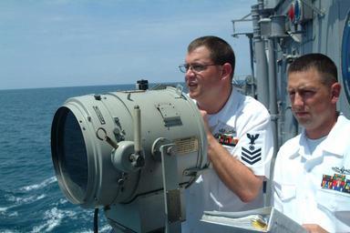 | Keywords: US Navy 060603-N-4124C-004 Sailors assigned to the Avenger-class mine warfare ship USS Patriot (MCM 7), signal a good will message to a fellow mine countermeasures ship of the Japanese Maritime Self Defense Force (JMSSF).jpg en South China Sea June 3 2006 - Sailors assigned to the Avenger-class mine warfare ship USS Patriot MCM 7 signal a good will message to a fellow mine countermeasures ship of the Japanese Maritime Self Defense Force JMSDF as Patriot enters port in Malaysia Patriot is preparing to participate in the multi-national exercise Western Pacific Mine Countermeasures Exercise WP-MCMEX Patriot is currently deployed in Southeast Asia to support the 7th Fleet's interoperability and training commitments in mine neutralization warfare and maritime operations U S Navy photo by Mass Communication Specialist Adam R Cole RELEASED 2006-06-03 060603-N-4124C-004 Navy http //www navy mil/view_image asp id 35484 U S Navy photo by Mass Communication Specialist Adam R Cole PD-USGov-Military-Navy USS Patriot MCM-7 Naval signalling lamps |