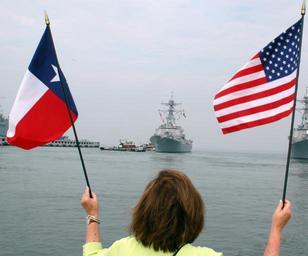 | Keywords: US Navy 060608-N-4014G-262 Carolyn Thompson waves Texan and American flags as the guided-missile destroyer USS Bulkeley (DDG 84) deploys with the Iwo Jima Expeditionary Strike Group (ESG) at Naval Station Norfolk, Va.jpg en Norfolk Va June 8 2006 - Carolyn Thompson waves Texan and American flags as the guided-missile destroyer USS Bulkeley DDG 84 deploys with the Iwo Jima Expeditionary Strike Group ESG at Naval Station Norfolk Va The ESG consists of the amphibious assault ship USS Iwo Jima LHD 7 the amphibious transport ship USS Nashville LPD 13 the guided missile destroyers USS Cole DDG 67 and USS Bulkeley DDG 84 - all home ported in Norfolk Va ; the guided missile cruiser USS Philippine Sea CG 58 - homeported at Naval Station Mayport Fla ; the attack submarine USS Albuquerque SSN 706 - home ported at Naval Station Groton Conn ; and the dock landing ship USS Whidbey Island LSD 41 - home ported in Naval Amphibious Base Little Creek Va The 24th Marine Expeditionary Unit MEU is comprised of its command element 1st Battalion 8th Marines; Marine Medium Helicopter Squadron 365 and the MEU Service Support Group 24 all homeported at Camp Lejeune N C The Iwo Jima ESG has deployed for six months to conduct maritime security operations in support of the Global War on Terrorism U S Navy photo by Photographer's Mate Airman Apprentice Patrick Gearhiser RELEASED 2006-06-08 060608-N-4014G-262 Navy http //www navy mil/view_image asp id 35561 U S Navy photo by Photographer's Mate Airman Apprentice Patrick Gearhiser PD-USGov-Military-Navy Naval Station Norfolk Aboard USS Whidbey Island LSD-41 Photographs of flags of Texas Photographs of flags of the United States |