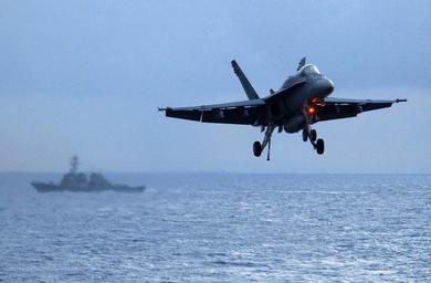 | Keywords: US Navy 060617-N-5549O-287 An F-A-18C Hornet makes a final approach for an arrested landing on the flight deck aboard the Nimitz-class aircraft carrier USS Ronald Reagan (CVN 76).jpg en Philippine Sea June 17 2006 - An F/A-18C Hornet makes a final approach for an arrested landing on the flight deck aboard the Nimitz-class aircraft carrier USS Ronald Reagan CVN 76 as the guided-missile destroyer USS Decatur DDG 73 passes on the horizon Ronald Reagan and embarked Carrier Air Wing One Four CVW-14 are currently on a regularly scheduled deployment in support of the global war on terrorism and maritime security operations MSO and participating in Exercise Valiant Shield 2006 Valiant Shield focuses on integrated joint training among U S military forces enabling real-world proficiency in sustaining joint forces and in detecting locating tracking and engaging units at sea in the air on land and cyberspace in response to a range of mission areas U S Navy photo by Photographer's Mate 3rd Class Kevin S O'Brien RELEASED 2006-06-17 060617-N-5549O-287 Navy http //www navy mil/view_image asp id 35920 U S Navy photo by Photographer's Mate 3rd Class Kevin S O'Brien PD-USGov-Military-Navy Valiant Shield 2006 USS Decatur DDG-73 |
