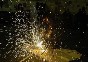 | Keywords: US Navy 060626-N-6920A-001 Demonstrating the proper use of a portable exothermic cutting unit (PECU), Damage Control Fireman Apprentice Scott Edwards lights up the hangar bay aboard the amphibious assault ship USS Saipan (LHA.jpg en Atlantic Ocean May 26 2006 - Demonstrating the proper use of a portable exothermic cutting unit PECU Damage Control Fireman Apprentice Scott Edwards lights up the hangar bay aboard the amphibious assault ship USS Saipan LHA 2 A quarter inch steel slab was used to show how the PECU could cut holes to access damaged spaces indirectly and aid in firefighting efforts Saipan will be participating in a multi-national combined exercise with North African and European forces this summer during exercise PHOENIX EXPRESS The exercise will provide U S and allied forces an opportunity to participate in diverse maritime training scenarios helping to increase maritime domain awareness and strengthen emerging and enduring partnerships U S Navy photo by Photographer s Mate 3rd Class Latrice Ames RELEASED 2006-05-26 060626-N-6920A-001 Navy http //www navy mil/view_image asp id 35048 U S Navy photo by Photographer s Mate 3rd Class Latrice Ames PD-USGov-Military-Navy Damage control Phoenix Express 2006 Aboard USS Saipan LHA-2 |