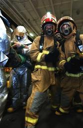 | Keywords: US Navy 060626-N-7526R-068 Sailors working on a fire fighting team simulate putting water on a fire as other team members recover an injured Sailor during a mass casualty drill.jpg en Pacific Ocean June 26 2006 - Sailors working on a fire fighting team simulate putting water on a fire as other team members recover an injured Sailor during a mass casualty drill in the hanger bay aboard the Nimitz-class aircraft carrier USS Ronald Reagan CVN 76 Ronald Reagan and embarked Carrier Air Wing One Four CVW-14 are currently on a regular scheduled deployment in support of the global war on terrorism and maritime security operations U S Navy photo by Journalist 3rd Class Marc Rockwell-Pate RELEASED 2006-06-26 060626-N-7526R-068 Navy http //www navy mil/view_image asp id 36261 U S Navy photo by Journalist 3rd Class Marc Rockwell-Pate PD-USGov-Military-Navy Firefighting training on USS Ronald Reagan CVN-76 |