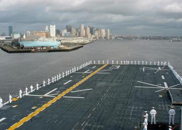 | Keywords: US Navy 060628-N-2382W-108 Sailors aboard the amphibious assault ship USS Kearsarge (LHD 3) man the rails while entering Boston Harbor.jpg en Boston Harbor June 28 2006 - Sailors aboard the amphibious assault ship USS Kearsarge LHD 3 man the rails while entering Boston Harbor Kearsarge is in Boston participating in activities and events in support of the 25th annual Harborfest U S photo by Mass Communication Specialist Seaman Finley Williams RELEASED 2006-06-28 060628-N-2382W-108 Navy http //www navy mil/view_image asp id 36367 U S Navy photo PD-USGov-Military-Navy Aboard USS Kearsarge LHD-3 Images from US Navy location BOSTON HARBOR Manning the rail in the United States Navy Boston skylines |