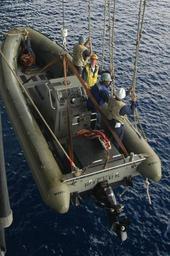 | Keywords: US Navy 060829-N-8604L-065 USS Kitty Hawk Sailors (CV 63) hold onto lifelines as a Rigid Hull Inflatable Boat (RHIB) is lifted from the water after participating in a small boat in distress and rescue drill.jpg en South China Sea Aug 29 2006 - USS Kitty Hawk Sailors CV 63 hold onto lifelines as a Rigid Hull Inflatable Boat RHIB is lifted from the water after participating in a small boat in distress and rescue drill RHIBs are used to transport Sailors to other vessels in an effort to fight fires stop flooding and help crewmembers and passengers Currently under way in the 7th Fleet area of responsibility Kitty Hawk demonstrates power projection and sea control as the U S Navy's only permanently forward-deployed aircraft carrier U S Navy photo by Mass Communication Specialist Seaman Joshua Wayne LeGrand RELEASED South China Sea Aug 29 2006 - USS Kitty Hawk Sailors CV 63 hold onto lifelines as a Rigid Hull Inflatable Boat RHIB is lifted from the water after participating in a small boat in distress and rescue drill RHIBs are used to transport Sailors to other vessels in an effort to fight fires stop flooding and help crewmembers and passengers Currently under way in the 7th Fleet area of responsibility Kitty Hawk demonstrates power projection and sea control as the U S Navy's only permanently forward-deployed aircraft carrier U S Navy photo by Mass Communication Specialist Seaman Joshua Wayne LeGrand RELEASED 2006-08-29 060829-N-8604L-065 Navy http //www navy mil/view_image asp id 38675 U S Navy photo by Mass Communication Specialist Seaman Joshua Wayne LeGrand PD-USGov-Military-Navy Aboard USS Kitty Hawk CV-63 Rigid-hulled inflatable boats |