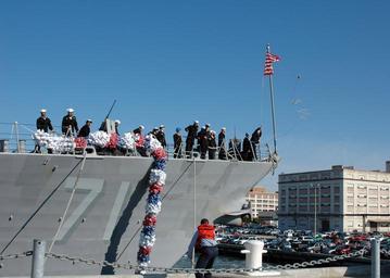 | Keywords: US Navy 061106-N-5055G-042 A Sailor aboard the guided-missile destroyer USS Ross (DDG 71) throws a mooring line to the pier as the ship prepares to moor in its homeport at Naval Station Norfolk.jpg en Norfolk Va Nov 6 20006 A Sailor aboard the guided-missile destroyer USS Ross DDG 71 throws a mooring line to the pier as the ship prepares to moor in its homeport at Naval Station Norfolk The Ross returned after a six-month deployment in support of Operation Active Endeavour OAE in the Mediterranean Sea as part of Standing NATO Maritime Group 2 SNMG-2 While on deployment Ross worked with more than sixty NATO and non-NATO ships from Israel and Russia and submarines and aircraft from England Greece Italy Turkey and the United States The deployment was designed to be flexible and provided presence and strike power to support joint and allied forces afloat and ashore U S Navy photo by Mass Communication Specialist 2nd Class Joshua L Glassburn RELEASED Nov 6 20006 061106-N-5055G-042 Navy http //www navy mil/view_image asp id 40583 U S Navy photo by Mass Communication Specialist 2nd Class Joshua L Glassburn PD-USGov-Military-Navy Naval Station Norfolk USS Ross DDG-71 Operation Active Endeavour Standing NATO Maritime Group 2 |