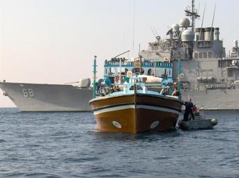 | Keywords: US Navy 061110-N-6397K-001 Responding to a distress call, Sailors assigned to a rescue and assistance team from the U.S. Navy guided-missile cruiser USS Anzio (CG 68), provide aid to the motor vessel SINAA, a 35-meter Iranian-f.jpg en Arabian Sea Nov 10 2006 Responding to a distress call Sailors assigned to a rescue and assistance team from the U S Navy guided-missile cruiser USS Anzio CG 68 provide aid to the motor vessel SINAA a 35-meter Iranian-flagged dhow Anzio supplied the dhow with water fuel and food to sustain her crew of 24 for their transit home Anzio is deployed as part of the Eisenhower Carrier Strike Group IKE CSG supporting Maritime Security Operations MSO in the 5th Fleet area of operations MSO seek to preserve the free and secure use of the world's oceans by legitimate mariners and prevent terrorist from attempting to use the maritime environment as a venue for attack or as a medium to transport personnel weapons or other material that could support their efforts U S Navy photo by Ensign Patrick King RELEASED 2006-11-10 061110-N-6397K-001 Navy http //www navy mil/view_image asp id 40682 U S Navy photo by Ensign Patrick King PD-USGov-Military-Navy Aboard USS Anzio CG-68 Sinaa ship Wooden vessels in Arabian Sea |