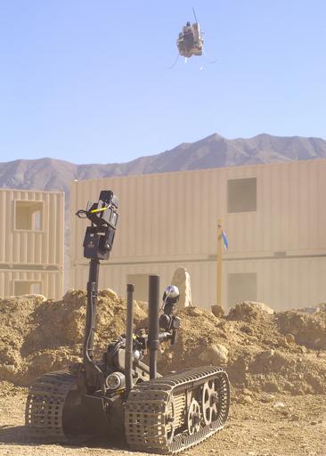 Keywords: US Navy 061115-N-9671T-101 A Foster-Miller Talon Mk.II searches the immediate area while a Micro Air Vehicle (MAV) provides a 360-degree view as the two work together while searching for a simulated improvised explosive device.jpg en China Lake Calif Nov 15 2006 - A Foster-Miller Talon Mk II searches the immediate area while a Micro Air Vehicle MAV provides a 360-degree view as the two work together while searching for a simulated improvised explosive device IED The MAV is in the operational test phase with military Explosive Ordnance Disposal EOD teams to evaluate its short-range reconnaissance capabilities U S Navy photo by Mass Communication Specialist 3rd Class Kenneth G Takada RELEASED 2006-11-15 061115-N-9671T-101 Navy http //www navy mil/view_image asp id 41143 U S Navy photo by Mass Communication Specialist 3rd Class Kenneth G Takada PD-USGov-Military-Navy Naval Air Weapons Station China Lake United States Navy Explosive Ordnance Disposal |