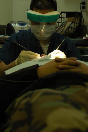 | Keywords: US Navy 061116-N-5627R-565 Dental Technician 2nd Class Jason Camiling performs a teeth cleaning procedure on a patient in the dental clinic aboard USS Ronald Reagan (CVN 76).jpg en Pacific Ocean Nov 16 2006 - Dental Technician 2nd Class Jason Camiling performs a teeth cleaning procedure on a patient in the dental clinic aboard USS Ronald Reagan CVN 76 The Nimitz-class nuclear-powered aircraft carrier is currently underway conducting routine carrier operations in the southern California operating area U S Navy photo by Mass Communication Specialist 3rd Class Joanna M Rippee RELEASED 2006-11-16 061116-N-5627R-565 Navy http //www navy mil/view_image asp id 40882 U S Navy photo by Mass Communication Specialist 3rd Class Joanna M Rippee PD-USGov-Military-Navy Face shields Medical spaces of USS Ronald Reagan CVN-76 |