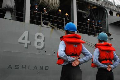| Keywords: US Navy 061116-N-2456S-189 Line handlers of the Harper's Ferry-class dock landing ship USS Oak Hill (LSD 51) prepare the Whidbey Island-class dock landing ship USS Ashland (LSD 48) for deployment.jpg en Virginia Beach Va Nov 16 2006 - Line handlers of the Harper's Ferry-class dock landing ship USS Oak Hill LSD 51 prepare the Whidbey Island-class dock landing ship USS Ashland LSD 48 for deployment from Naval Amphibious Base NAB Little Creek Ashland will relieve Tarawa-class amphibious assault ship USS Saipan LHA 2 in the 5th Fleet area of responsibility AOR U S Navy photo by Mass Communication Specialist Seaman John Suits RELEASED 2006-11-16 061116-N-2456S-189 Navy http //www navy mil/view_image asp id 40910 U S Navy photo by Mass Communication Specialist Seaman John Suits PD-USGov-Military-Navy Naval Amphibious Base Little Creek Aboard USS Ashland LSD-48 Number 48 on vehicles |