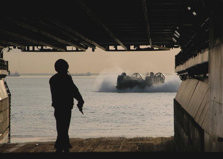 Keywords: US Navy 061127-N-0458E-043 A Sailor aboard the multipurpose amphibious assault ship USS Wasp (LHD 1) guides a Landing Craft Air Cushion (LCAC) into the well deck during LCAC operations.jpg en Atlantic Ocean Nov 27 2006 - A Sailor aboard the multipurpose amphibious assault ship USS Wasp LHD 1 guides a Landing Craft Air Cushion LCAC into the well deck during LCAC operations LCAC's are one of the methods Wasp uses to send Marines and their supplies ashore Wasp is currently in transit to Philadelphia to provide support during the festivities surrounding the Army-Navy game U S Navy photo by Mass Communication Specialist 2nd Class Katie Earley RELEASED 2006-11-27 061127-N-0458E-043 Navy http //www navy mil/view_image asp id 41421 U S Navy photo by Mass Communication Specialist 2nd Class Katie Earley PD-USGov-Military-Navy USS Wasp LHD-1 well deck Well decks Landing Craft Air Cushion |