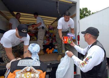 | Keywords: US Navy 061203-N-4965F-001 Master Chief Petty Officer Steve Hady (right) assigned to Commander, Submarine Force U.S. Pacific Fleet, hands toys to Sgt. David Herrera.jpg en Pearl Harbor Hawaii Dec 3 2006 - Master Chief Petty Officer Steve Hady right assigned to Commander Submarine Force U S Pacific Fleet hands toys to Sgt David Herrera Staff Sgt John Hassel Staff Sgt Robert Marchand and Staff Sgt Marco Garcia from the 4th Marine Division 4th Force Reconnaissance Company Marine Corps Base Hawaii during the 32nd annual Street Bikers United Toy Run Parade Toys for Tots ride This year's Toys for Tots motorcycle ride gathered more than 6 000 military and civilian motorcyclists and was the largest motorcycle event ever on the island of Oahu The annual event generates approximately one quarter of all toys donated all year from Hawaii and will provide Christmas gifts for more than 20 000 children U S Navy photo by Mass Communication Specialist James E Foehl RELEASED 2006-12-03 061203-N-4965F-001 Navy http //www navy mil/view_image asp id 41349 U S Navy photo by Mass Communication Specialist James E Foehl PD-USGov-Military-Navy 65th anniversary of Pearl Harbor attack |