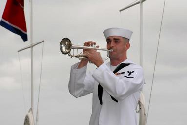 | Keywords: US Navy 061207-N-4965F-054 A Sailor assigned to U.S. Pacific Fleet Band sounds Taps during a joint U.S. Navy-National Park Service ceremony commemorating the 65th Anniversary of the attack on Pearl Harbor.jpg en Pearl Harbor Hawaii Dec 7 2006 - A Sailor assigned to U S Pacific Fleet Band sounds Taps during a joint U S Navy/National Park Service ceremony commemorating the 65th Anniversary of the attack on Pearl Harbor More than 1 500 Pearl Harbor survivors their families and friends from around the nation joined more than 2 000 distinguished guests and the general public for the annual observance U S Navy photo by Mass Communication Specialist 1st Class James E Foehl RELEASED 2006-12-07 061207-N-4965F-054 Navy http //www navy mil/view_image asp id 41453 U S Navy photo by Mass Communication Specialist 1st Class James E Foehl PD-USGov-Military-Navy 65th anniversary of Pearl Harbor attack |