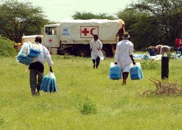 | Keywords: US Navy 061209-N-7770P-055 Workers from the United Nations High Commissioner for Refugees, UNHCR, and CARE gather bundles of shelters and mosquito nets that have been dropped from a U.S. Air Force C-130 cargo plane onto a field.jpg en Dadaab Kenya Dec 9 2006 - Workers from the United Nations High Commissioner for Refugees UNHCR and CARE gather bundles of shelters and mosquito nets that have been dropped from a U S Air Force C-130 cargo plane onto a field in rural Kenya The material is to help 160 000 victims of recent flooding in Kenya who have been cut off from the rest of the country by floodwaters that washed roads away Combined Joint Task Force-Horn of Africa service members were asked to provide the help and delivered about 150 metric tons of needed supplies The material will be taken to a CARE distribution center where it will be given to flood victims U S Navy photo by Chief Mass Communication Specialist Robert Palomares RELEASED 2006-12-09 061209-N-7770P-055 Navy http //www navy mil/view_image asp id 41536 U S Navy photo by Chief Mass Communication Specialist Robert Palomares PD-USGov-Military-Navy Images from US Navy location Dadaab Kenya Bundles luggage 2006 in Kenya UNHCR CARE International Unidentified trucks Mosquito nets |