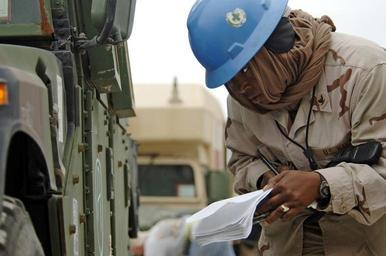 | Keywords: US Navy 061216-N-8148A-009 Boatswain's Mate 3rd Class Victoria Davis, assigned to Navy Cargo Handling Battalion Four (NCHB-4), inspects military vehicles prior to loading them on board Military Sealift Command (MSC) roll-on-rol.jpg en Kuwait Dec 16 2006 - Boatswain's Mate 3rd Class Victoria Davis assigned to Navy Cargo Handling Battalion Four NCHB-4 inspects military vehicles prior to loading them on board Military Sealift Command MSC roll-on/roll-off ship USNS Soderman T-AKR 317 Navy Cargo Handling Battalions are responsible for the safe and efficient onloading and offloading of cargo on board ships for transport back to the United States U S Navy photo by Mass Communication Specialist 2nd Class Kitt Amaritnant RELEASED 2006-12-16 061216-N-8148A-009 Navy http //www navy mil/view_image asp id 42548 U S Navy photo by Mass Communication Specialist 2nd Class Kitt Amaritnant PD-USGov-Military-Navy Kuwait |